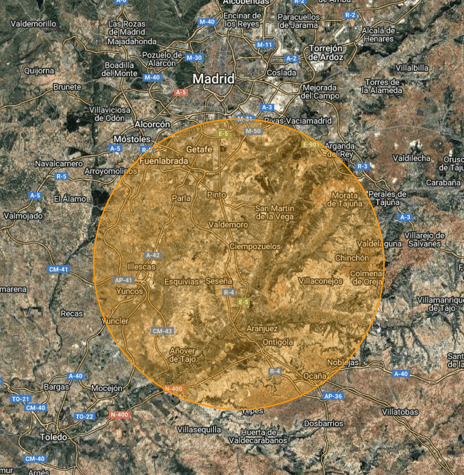 Al seleccionar un marcador VIP en el desplegable, se muestra un círculo de 25 kilómetros de radio alrededor de su ubicación aproximada. Este área indica la zona en la que se encuentra el marcador, pero sin revelar sus coordenadas exactas.